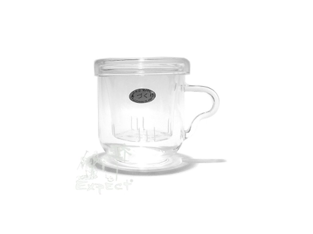 Bylináček z varného skla se sítkem a pokličkou.